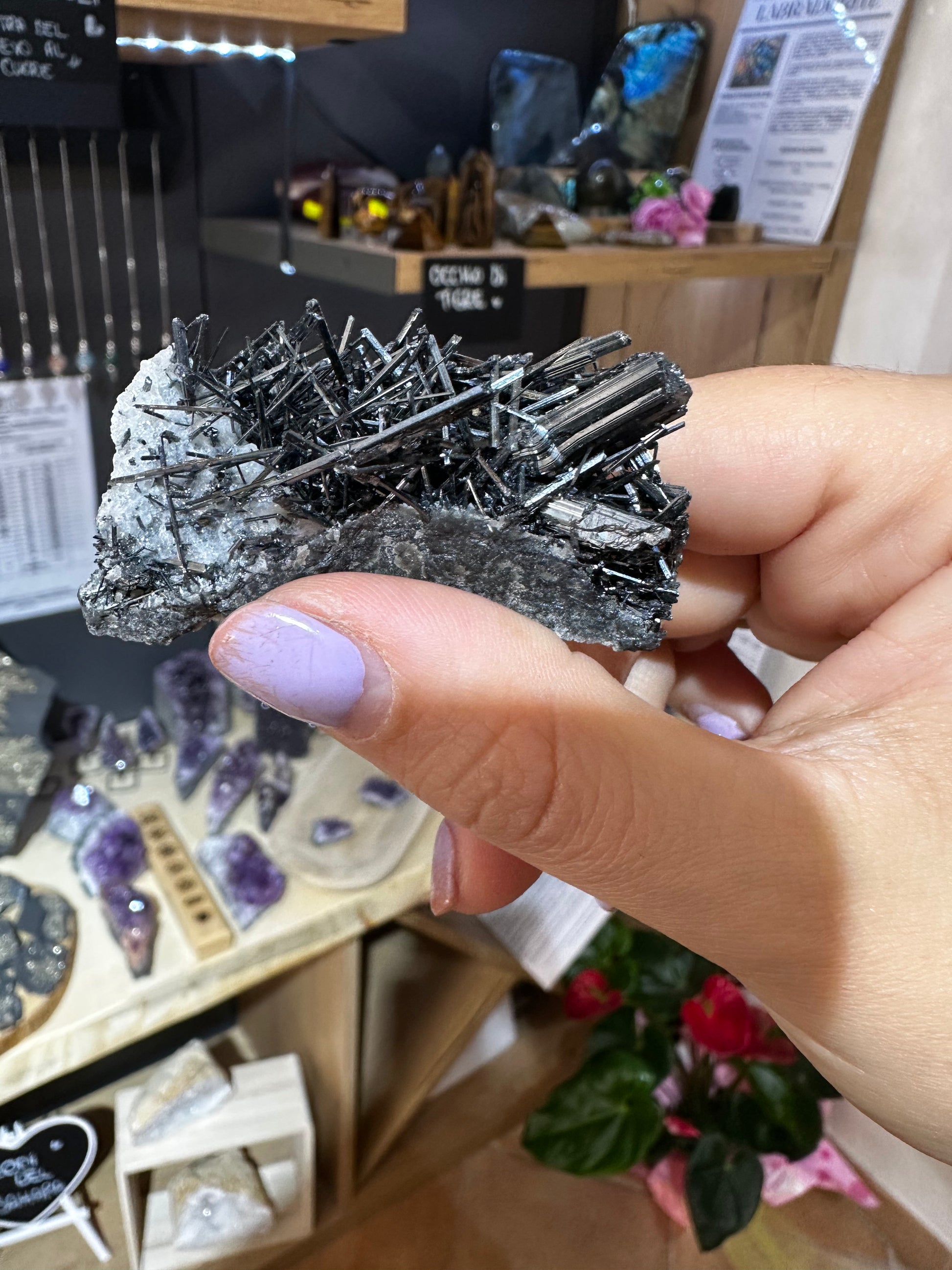 Con il suo aspetto metallico e affascinante, l’antimonite non è solo una bellezza da collezione, ma è anche conosciuta nel mondo della cristalloterapia per le sue proprietà energetiche.