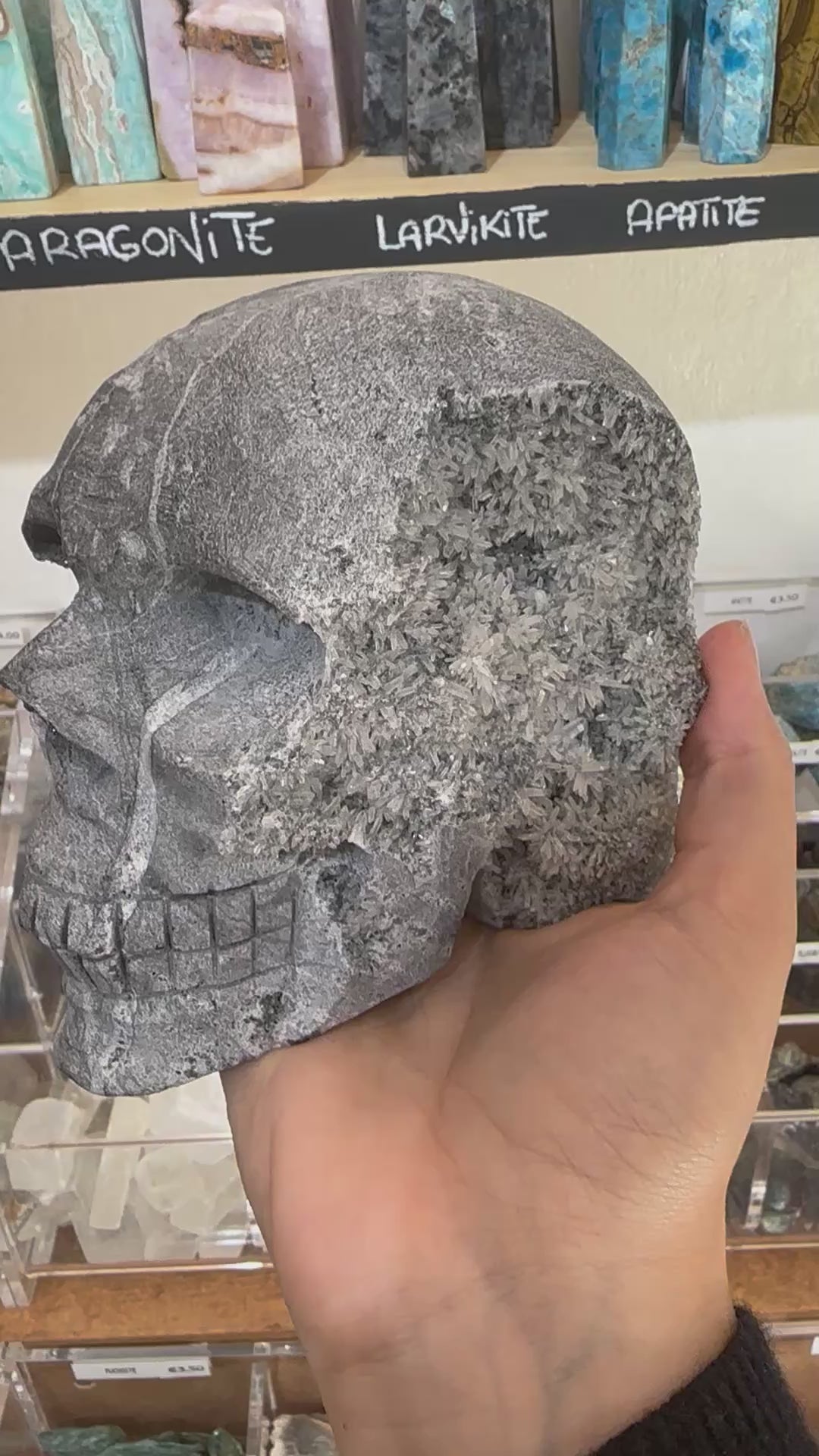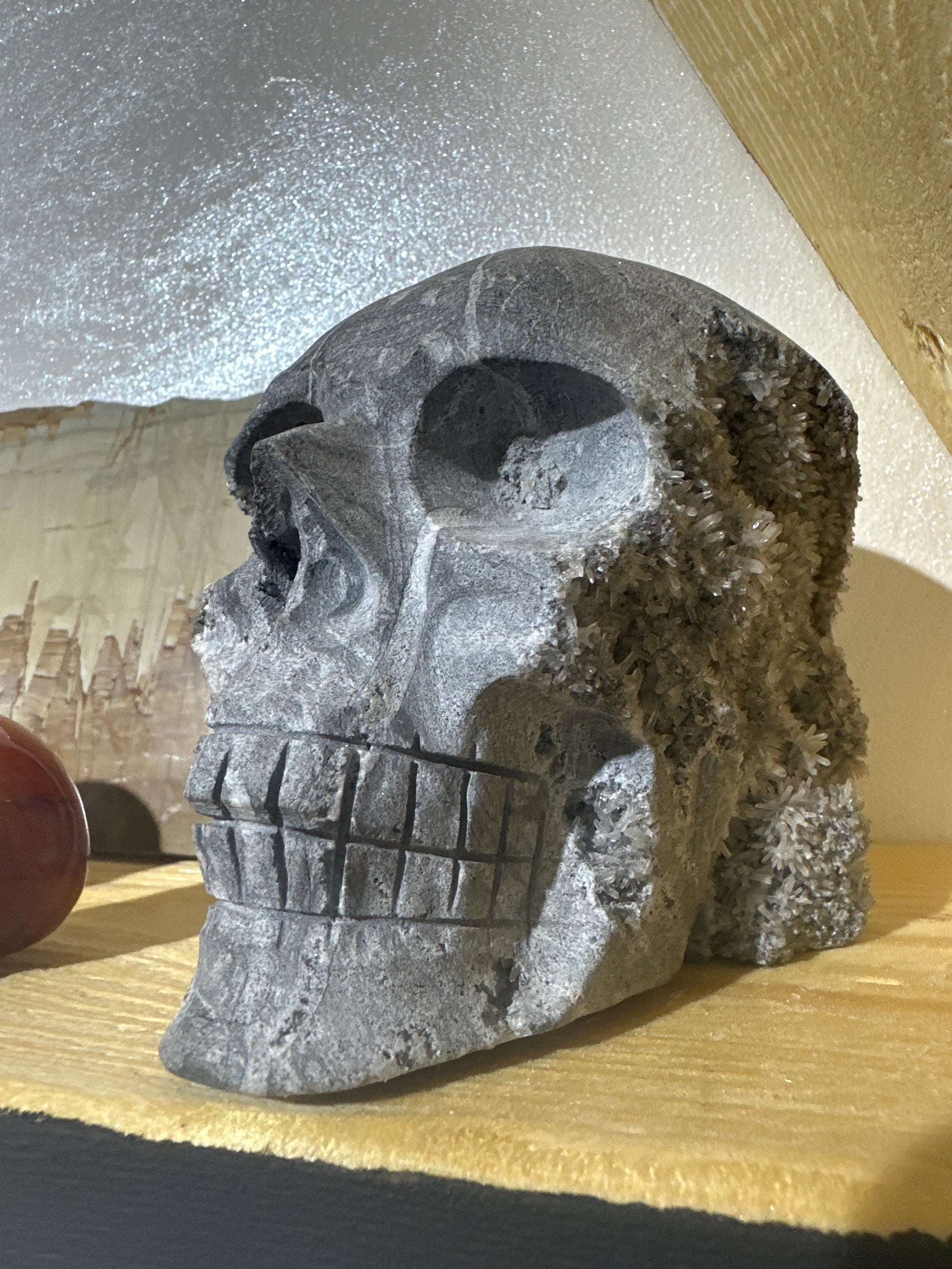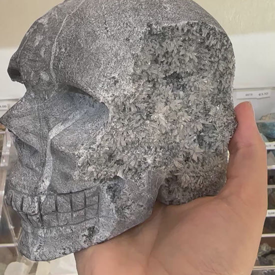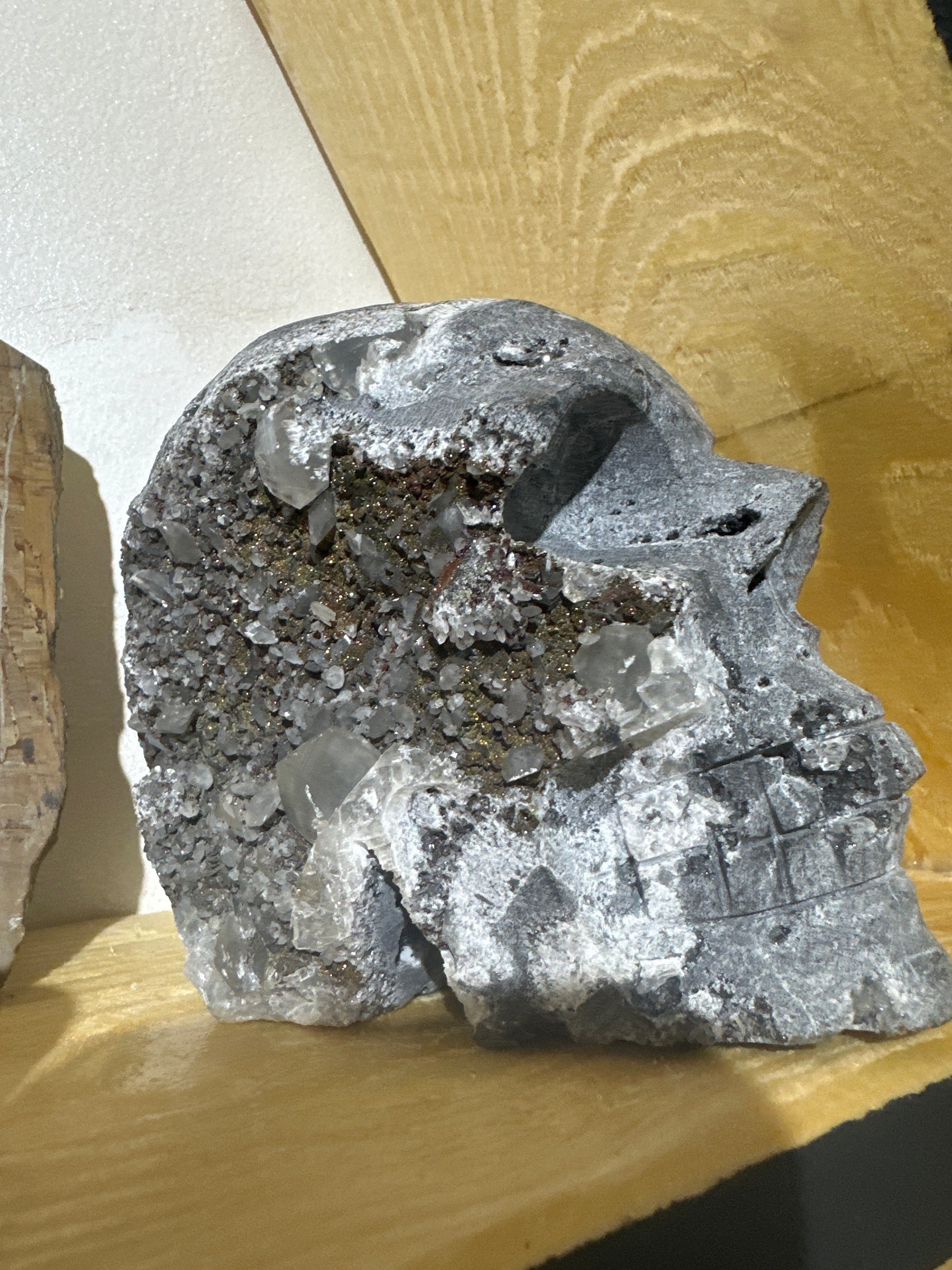 Teschio in quarzo, calcedonio e calcopirite