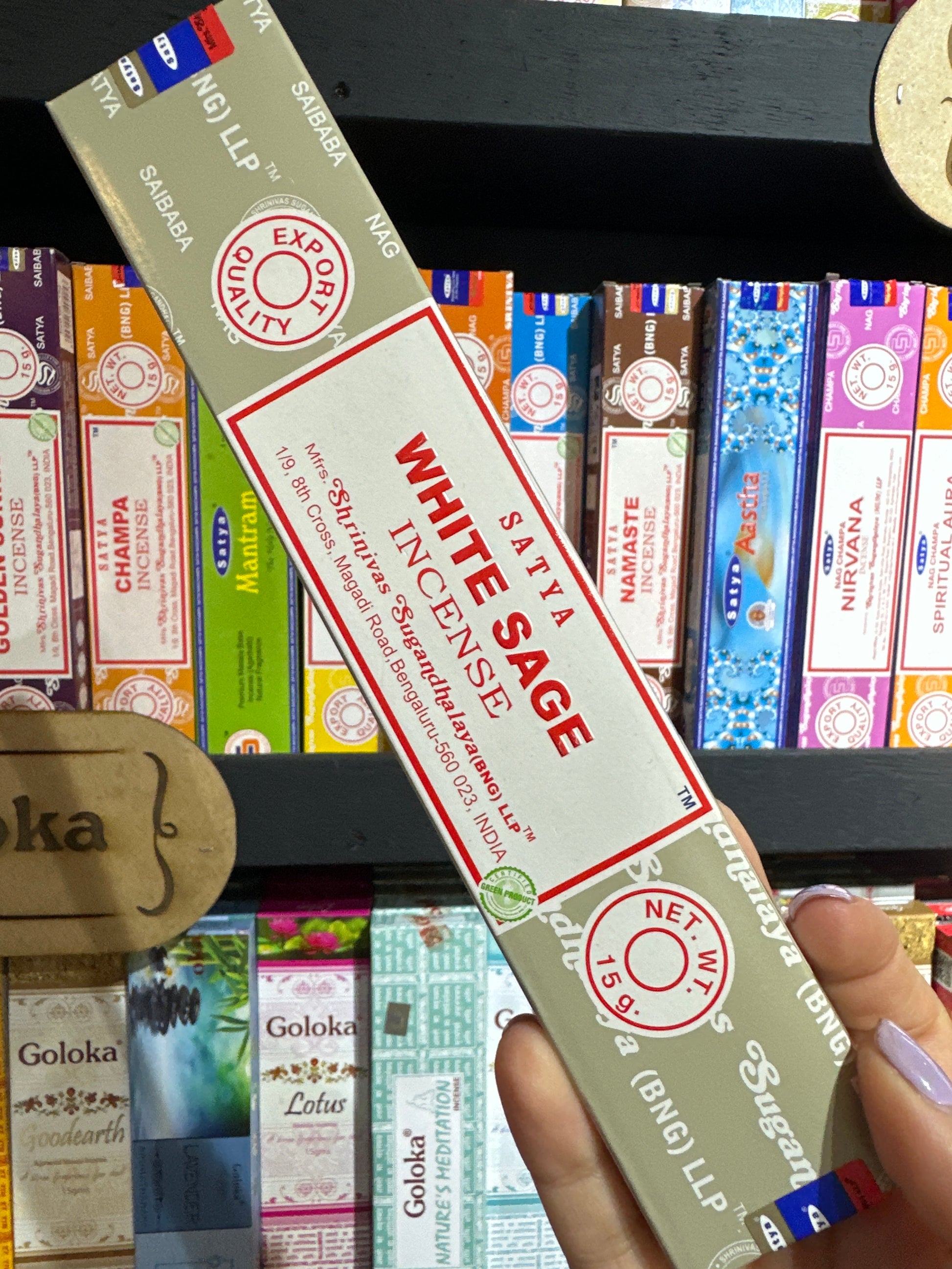 Con il suo meraviglioso profumo di salvia bianca, questo incenso Satya Sai Baba è perfetto per migliorare qualsiasi momento di relax e per purificare gli ambienti. Gli indiani nativi del Nord America hanno iniziato le loro cerimonie di purificazione e sessioni di guarigione bruciando le foglie secche in bastoncini. La salvia bianca è considerata sacra e si ritiene che pulisca lo spazio da tutti gli spiriti maligni o energie negative che possono essere presenti. La salvia bianca ha un profumo altamente aromatico e resinoso che consente maggiore capacità di concentrazione e maggiore facilità di rilassamento.